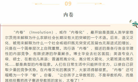 上周《語言文字周報》發布了2020十大熱詞,其中排名第九的內卷在評論區被討論的最多。