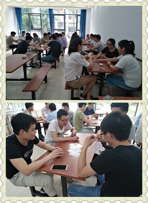 2017624日在公司食堂,小伙伴們齊聚一堂,兩兩配對玩起了摜蛋,此次比賽為了激發(fā)全民的熱情,特別設立了摜蛋獎金??此麄円粋€個打得熱火朝天的。