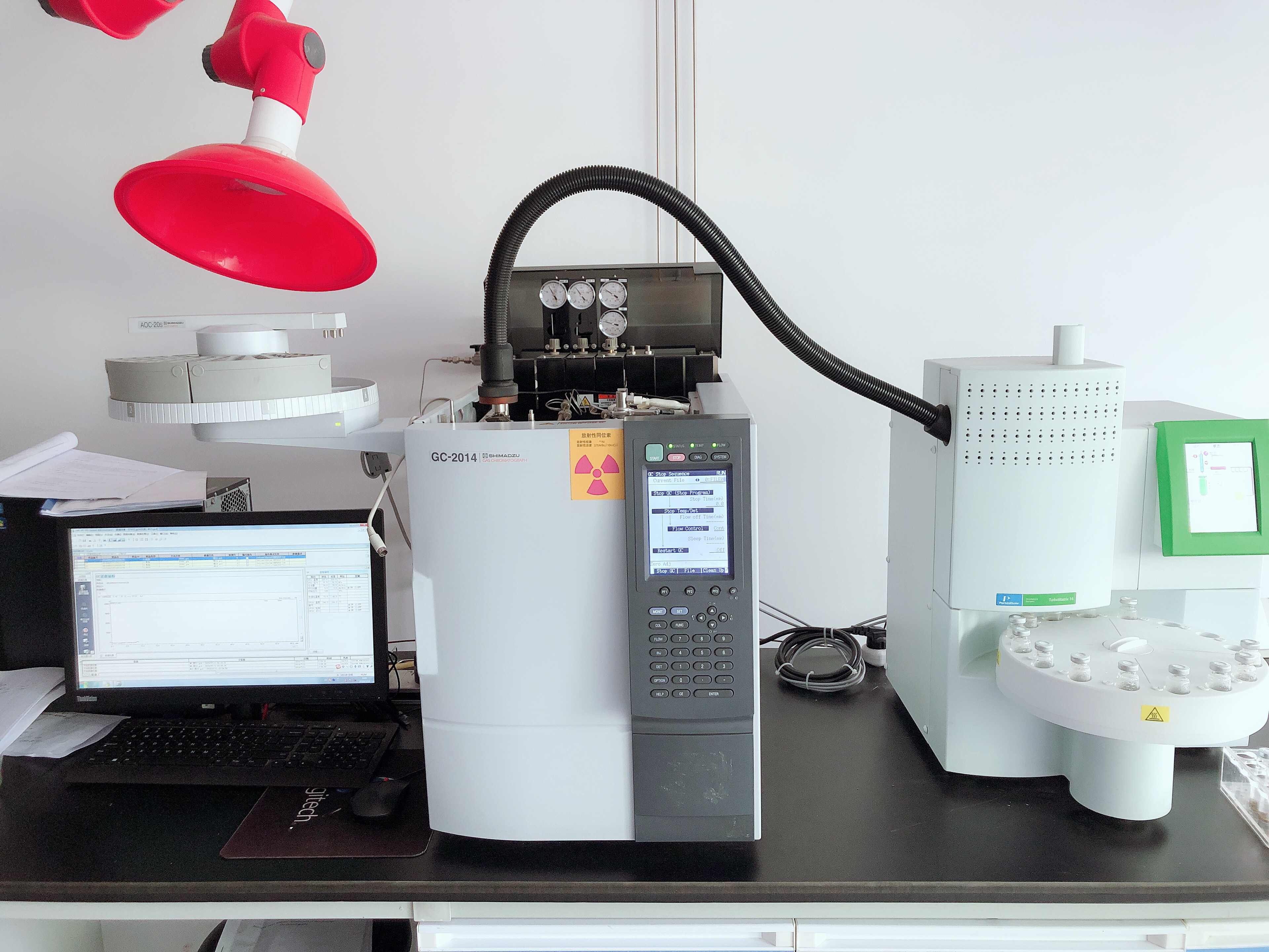 島津氣相色譜儀:是利用載氣由高壓鋼瓶中流出,通過凈化干燥管使載氣凈化,以穩定的壓力、恒定的速度流經氣化室與氣化的樣品混合,將樣品氣體帶入色譜柱中進行分離。分離后的各組分隨著載氣先后流入檢測器,檢測器將物質的濃度或質量的變化轉變為一定的電信號,經放大后在記錄儀上記錄下來,得到色譜曲線。可以進行定性分析,根據峰面積或峰高的大小,可以進行定量分析。