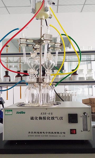 硫化物酸化吹氣儀:樣品中的硫化物經酸化,生成的硫化氫隨載氣(氨氣)進入吸收瓶/吸收顯色管中被吸收溶液吸收,選擇相應的分析方法對吸收瓶/吸收顯色管中吸收的硫離子進行分析測定。